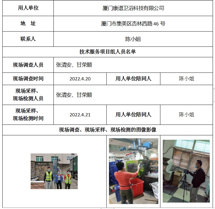 廈門康譜衛浴科技有限公司2022年工作場所職業病危害因素檢測-福建共益安全環保科技