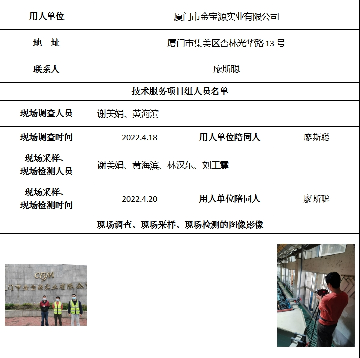 廈門市金寶源實業有限公司2022年工作場所職業病危害因素檢測-福建共益安全環保科技