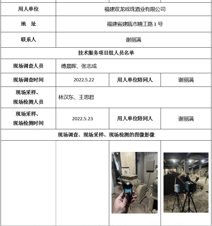 福建雙龍戲珠酒業有限公司2022年工作場所職業病危害因素檢測-福建共益安全環保科技