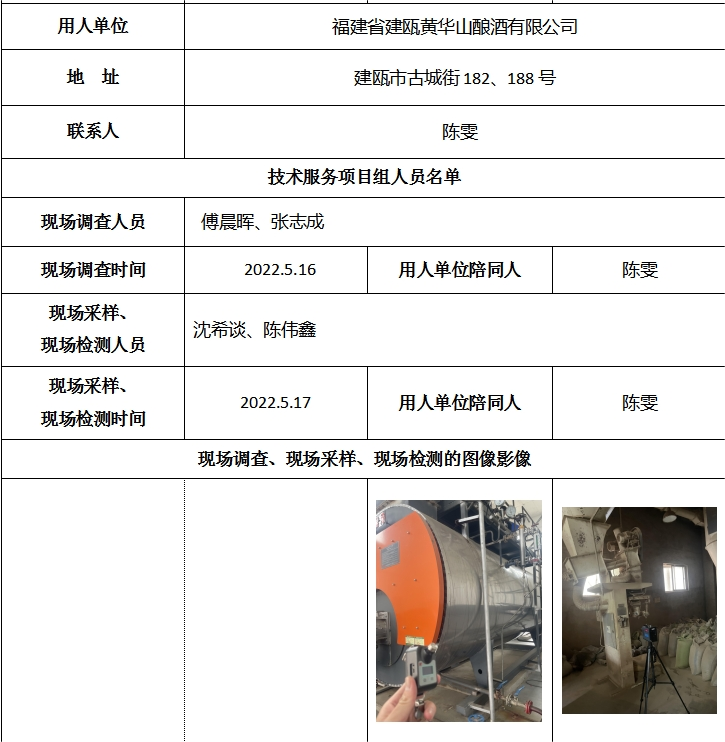 福建省建甌黃華山釀酒有限公司2022年工作場所職業病危害因素檢測-福建共益安全環保科技