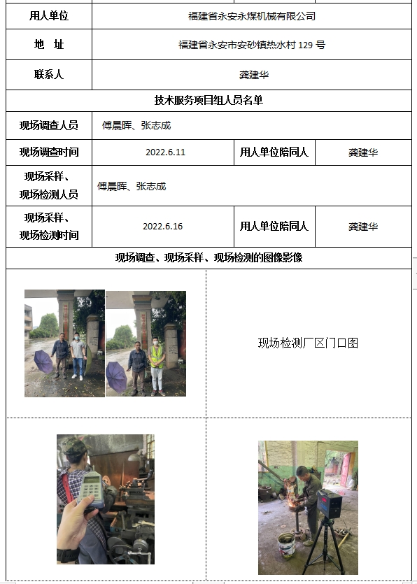 福建省永安永煤機械有限公司2022年工作場所職業病危害因素檢測-福建共益安全環保科技