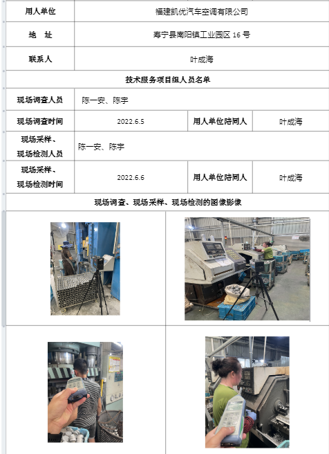 福建凱優汽車空調有限公司 工作場所職業病危害因素檢測-福建共益安全環保科技
