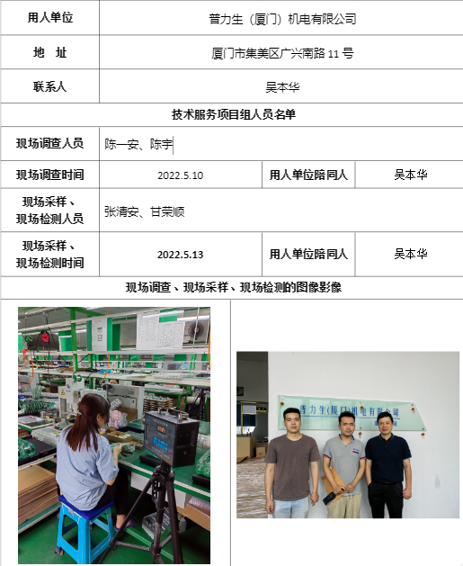 普力生(廈門)機電有限公司工作場所職業(yè)病危害因素檢測-福建共益安全環(huán)保科技