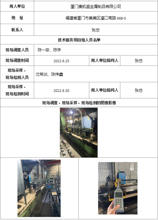 廈門康凱盛金屬制品有限公司 工作場所職業病危害因素檢測-福建共益安全環??萍?/strong>