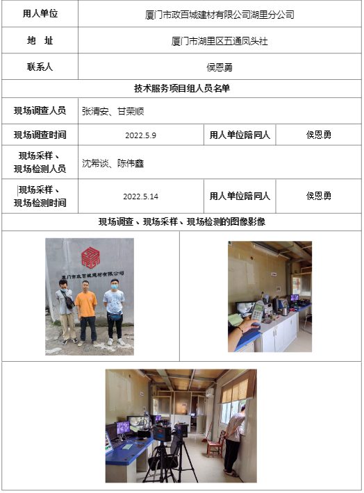 廈門市政百城建材有限公司湖里分公司工作場所職業病危害因素檢測-福建共益安全環保科技