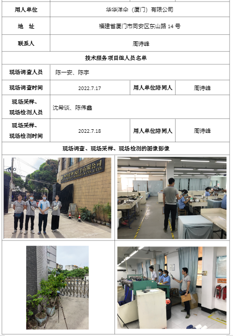 華華洋傘(廈門(mén))有限公司工作場(chǎng)所職業(yè)病危害因素檢測(cè)-福建共益安全環(huán)??萍?/strong>