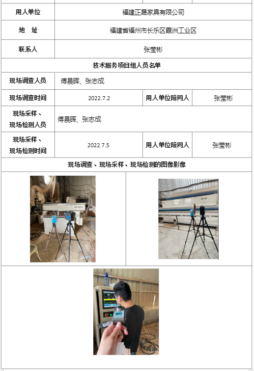 福建正晟家具有限公司工作場所職業病危害因素檢測-福建共益安全環保科技