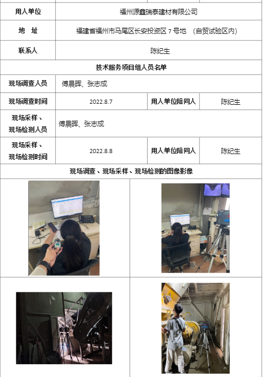 福州源鑫瑞泰建材有限公司工作場所職業病危害因素檢測-福建共益安全環保科技