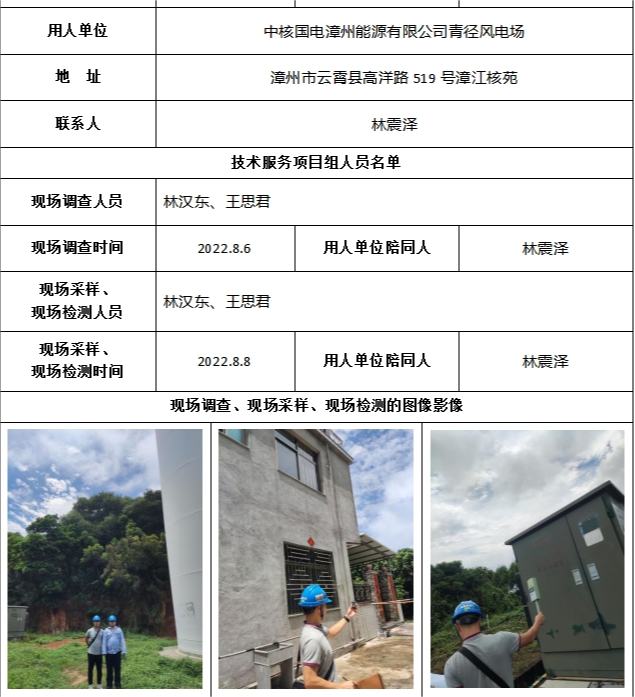 中核國電漳州能源有限公司青徑風電場2022年工作場所職業(yè)病危害因素檢測