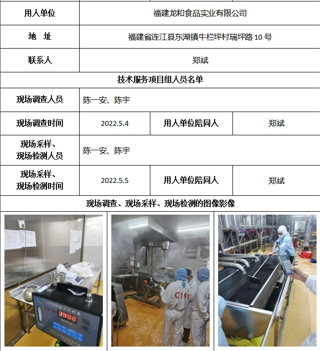 福建龍和食品實業(yè)有限公司2022年工作場所職業(yè)病危害因素檢測