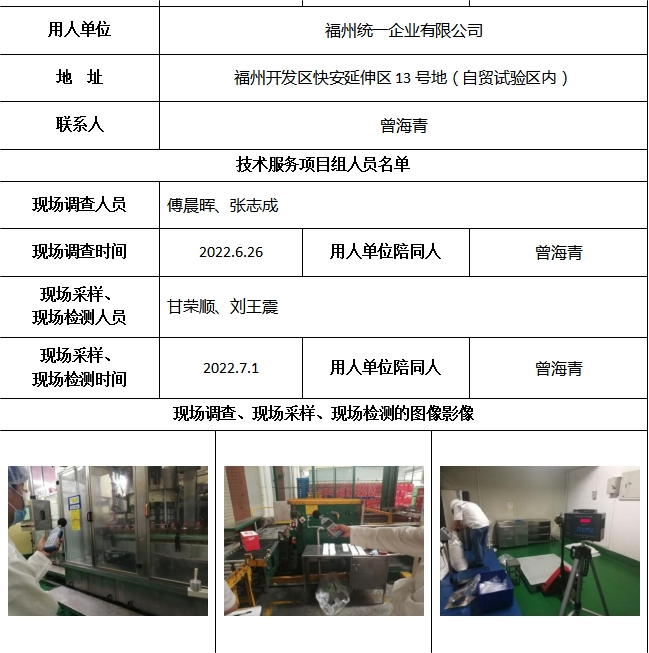 福州統一企業有限公司2022年工作場所職業病危害因素檢測