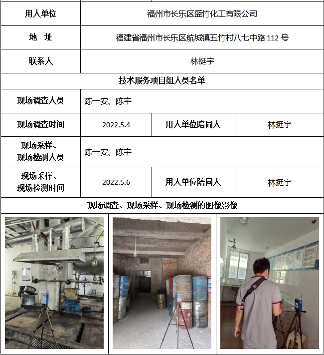 福州市長樂區盛竹化工有限公司2022年工作場所職業病危害因素檢測