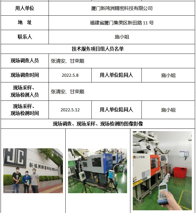 廈門新鴻洲精密科技有限公司2022年工作場所職業(yè)病危害因素檢測