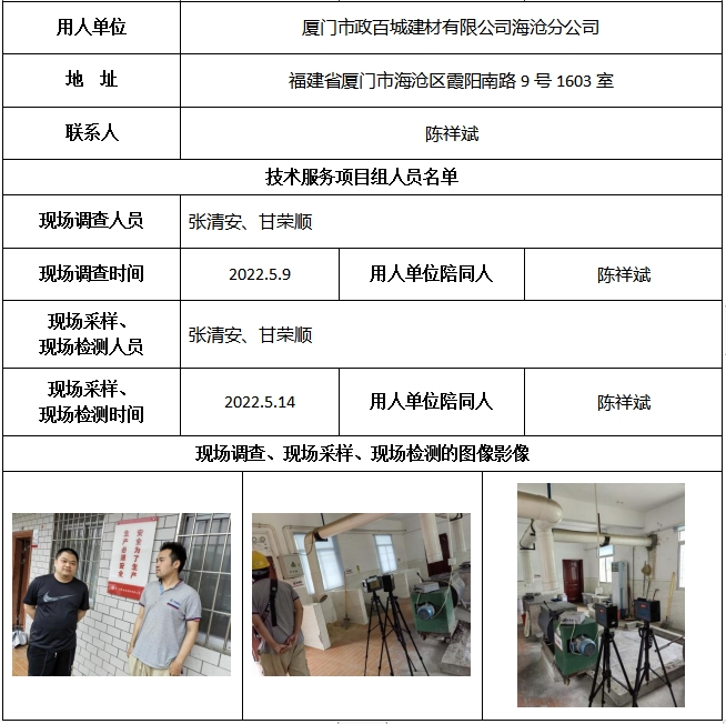 廈門市政百城建材有限公司海滄分公司2022年工作場所職業病危害因素檢測
