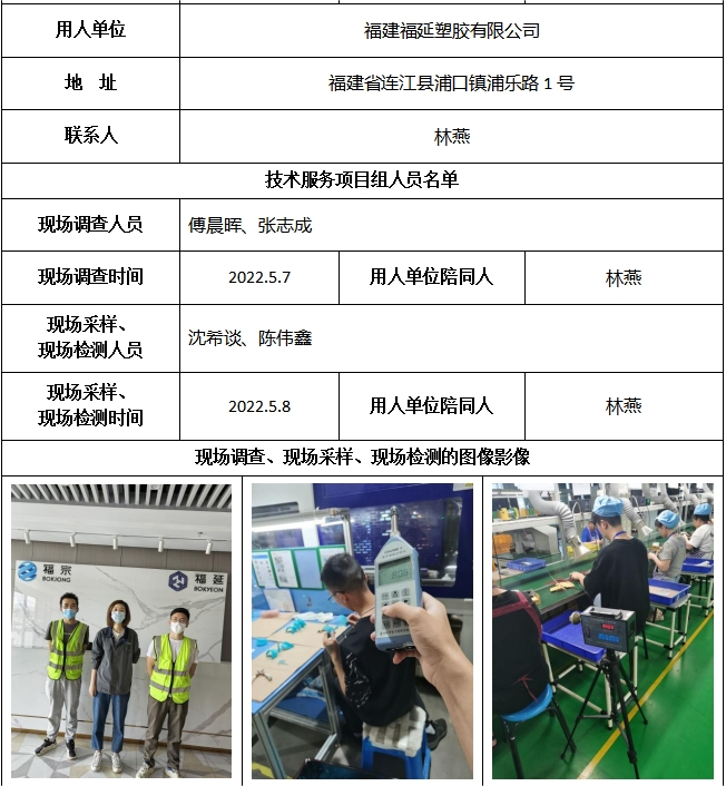 福建福延塑膠有限公司2022年工作場所職業病危害因素檢測