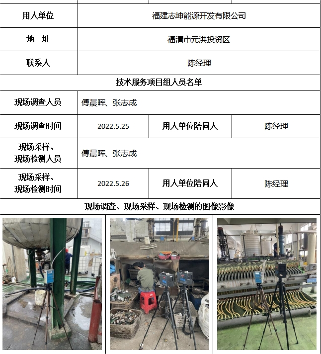 福建志坤能源開發有限公司2022年工作場所職業病危害因素檢測
