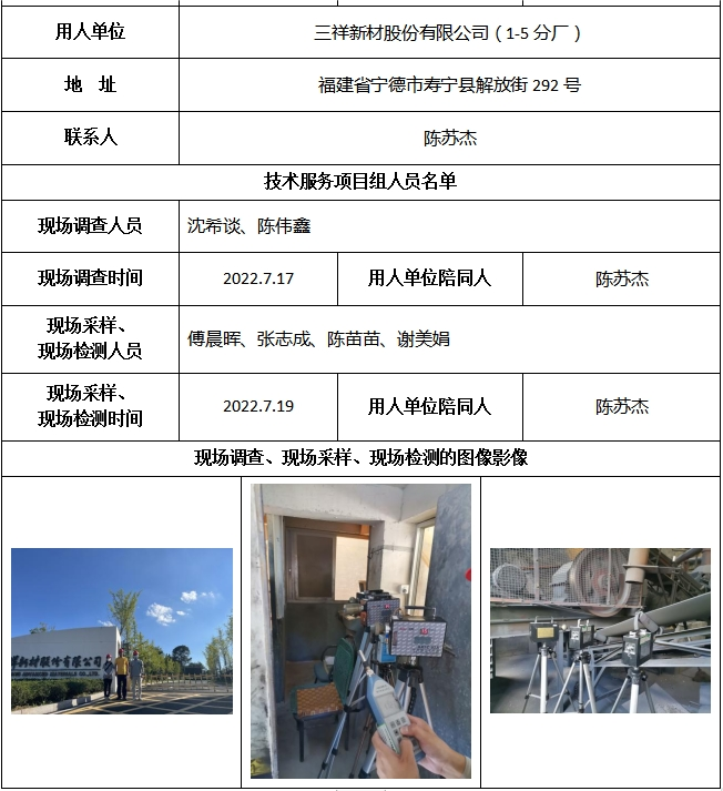 三祥新材股份有限公司(1-5分廠)2022年工作場所職業病危害因素檢測