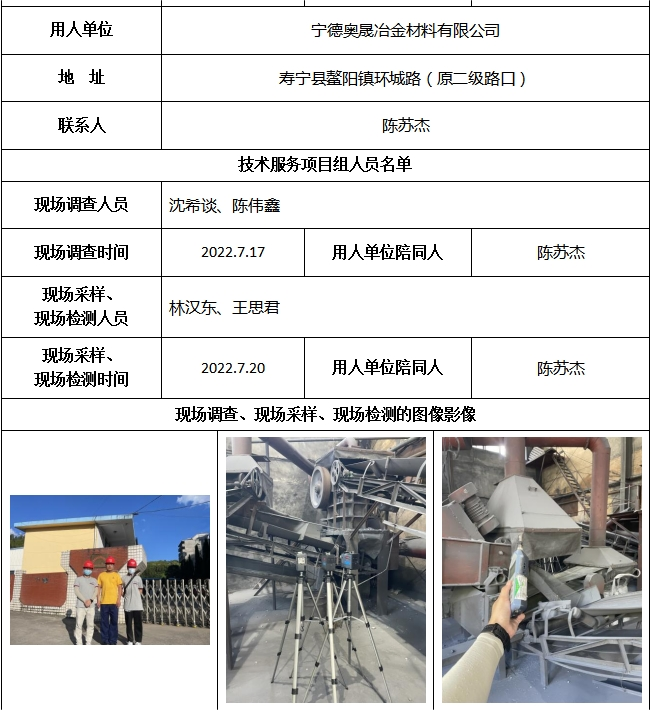 寧德奧晟冶金材料有限公司2022年工作場所職業病危害因素檢測