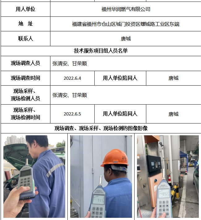 福州華潤燃?xì)庥邢薰?022年工作場所職業(yè)病危害因素檢測
