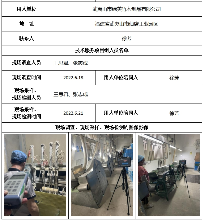 武夷山市綠美竹木制品有限公司2022年工作場所職業病危害因素檢測