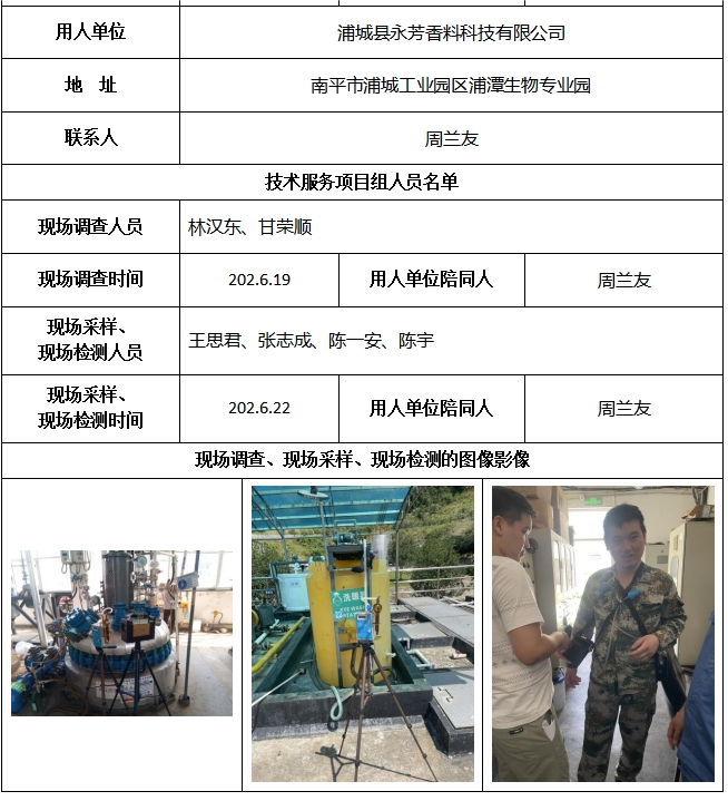 浦城縣永芳香料科技有限公司2022年工作場所職業(yè)病危害因素檢測