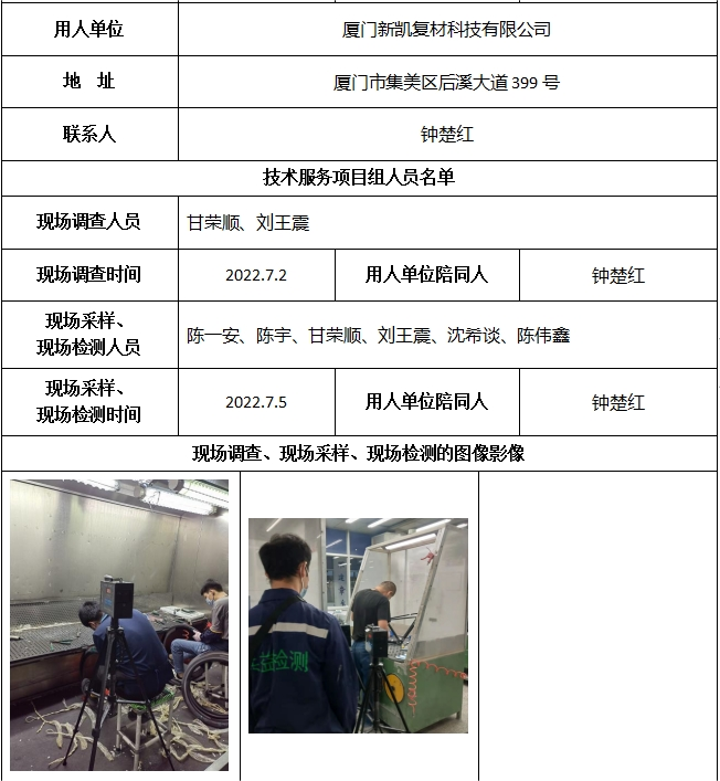 廈門新凱復材科技有限公司2022年工作場所職業病危害因素檢測