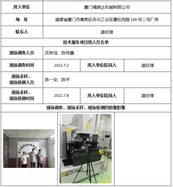 廈門禧源達機械有限公司2022年工作場所職業病危害因素檢測