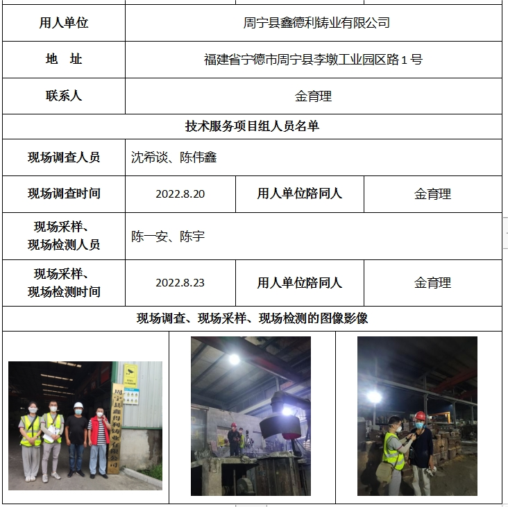 周寧縣鑫德利鑄業有限公司2022年工作場所職業病危害因素檢測