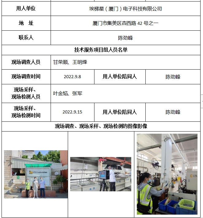 埃梯星(廈門)電子科技有限公司2022年工作場所職業(yè)病危害因素檢測