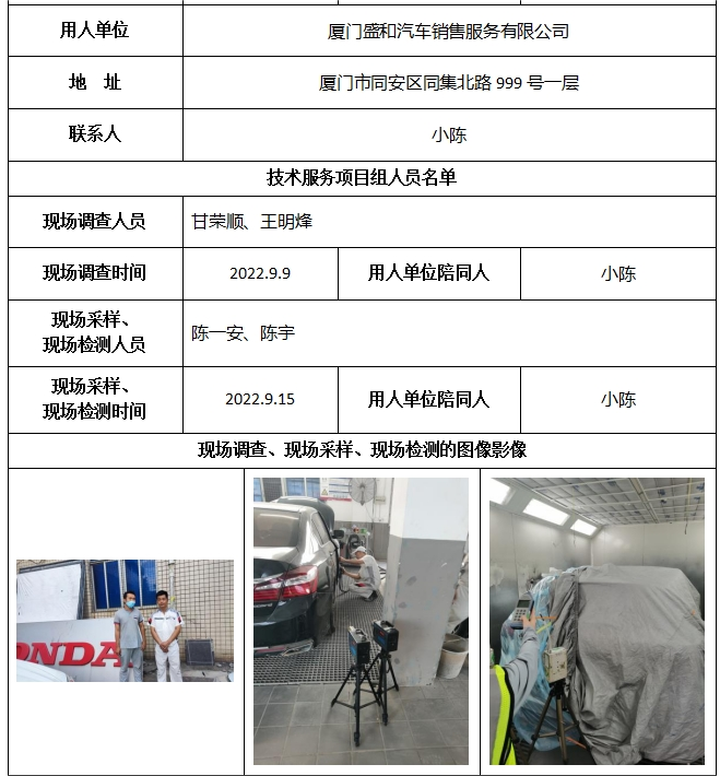 廈門盛和汽車銷售服務(wù)有限公司2022年工作場(chǎng)所職業(yè)病危害因素檢測(cè)