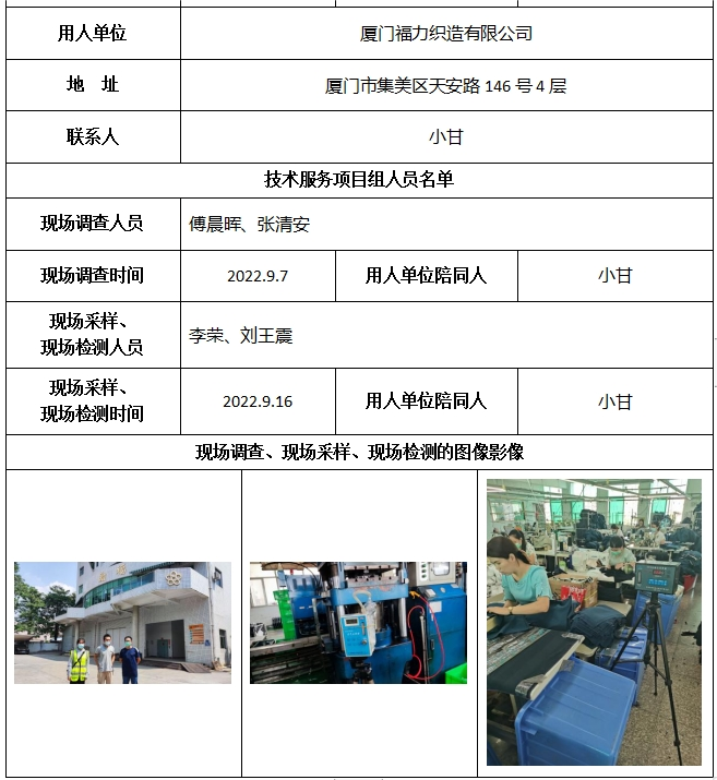 廈門福力織造有限公司2022年工作場所職業病危害因素檢測