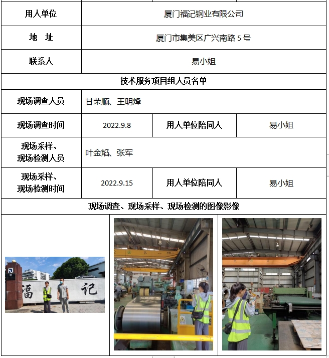廈門福記鋼業有限公司2022年工作場所職業病危害因素檢測