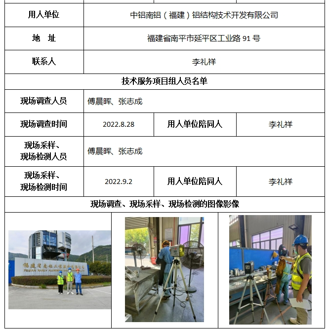中鋁南鋁(福建)鋁結構技術開發有限公司2022年工作場所職業病危害因素檢測