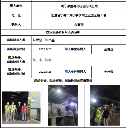 周寧縣鑫德利鑄業(yè)有限公司工作場所職業(yè)病危害因素檢測-福建共益安全環(huán)保科技