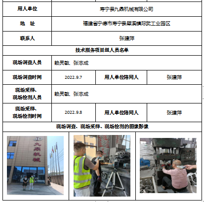 壽寧縣九鼎機械有限公司工作場所職業(yè)病危害因素檢測-福建共益安全環(huán)保科技