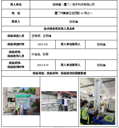 埃梯星(廈門)電子科技有限公司工作場所職業病危害因素檢測-福建共益安全環保科技