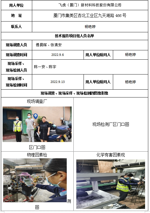 飛虎(廈門)新材料科技股份有限公司2022年工作場所職業病危害因素檢測